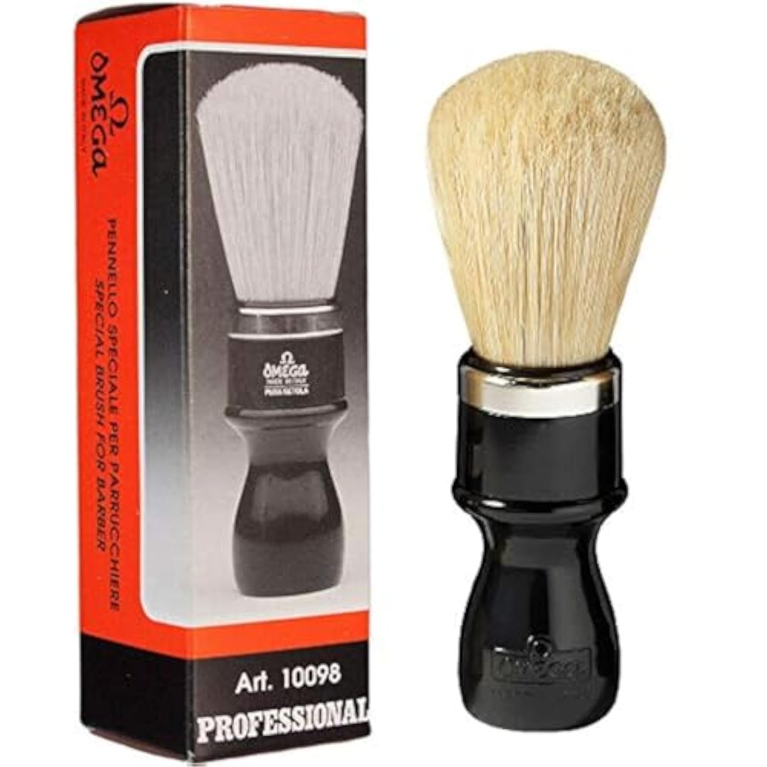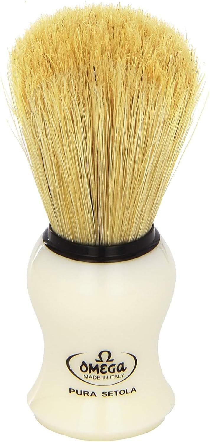 Omega 11137 shaving brush, handmade in Italy. 100% natural boar bristles with 24mm knot and 52mm loft. Solid ash wood handle with natural warmth and comfortable grip. Long, sturdy bristles excel at loading hard soaps and creams, producing dense, creamy lather. Tips soften with regular use while maintaining backbone. Classic Italian design for an authentic traditional shave.